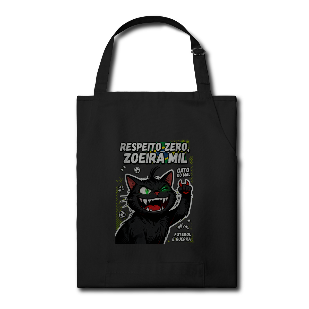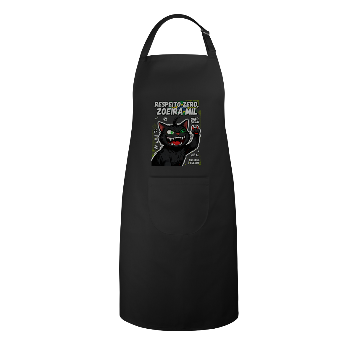 Churrasco e futebol com respeito zero e zoeira mil. Avental brim exclusivo Dicavalli do gato do mal para quem comanda a grelha com mesma intensidade que zoeira o rival. Expressão diabólica perfeita para churrascos em dia de jogo onde a carne é sagrada mas a zoeira é obrigatória. Design horror-comédia com elementos de futebol e rivalidade engraçada. Arte original que une duas paixões brasileiras: churrasco e futebol guerra. Ideal para churrasqueiros torcedores nerds e geeks do caos culinário. Qualidade brim premium para quem assa carne e zoeira com maestria única.