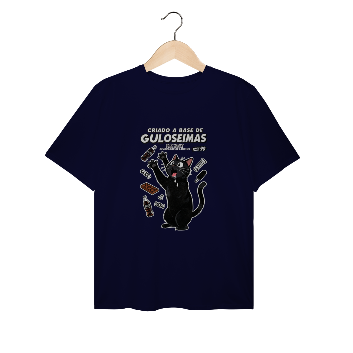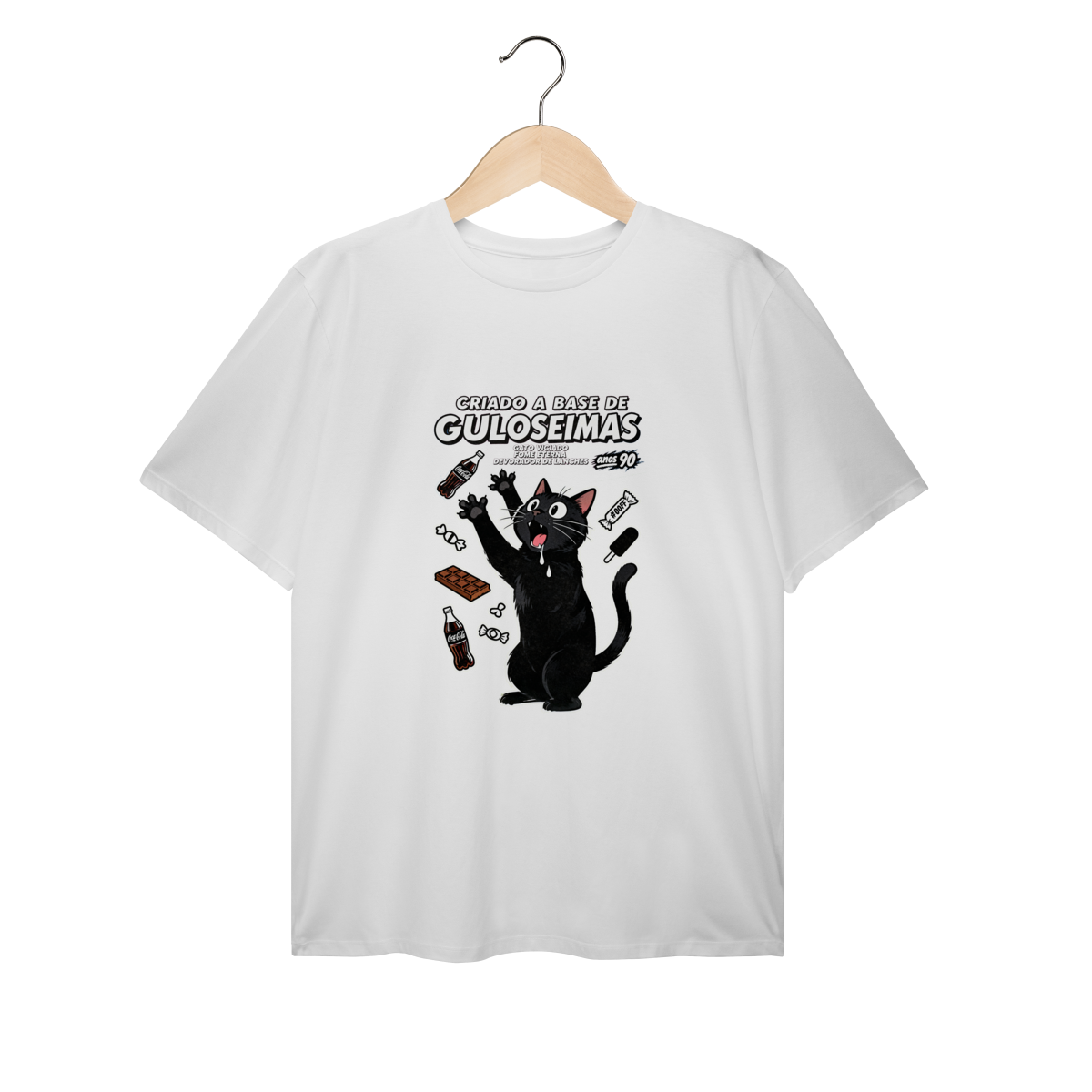 Criado a base de guloseimas e fome eterna insaciável. Camiseta exclusiva Dicavalli com nosso gato obsessivo em desespero cômico por snacks. Expressão de quem vê um salgadinho e perde totalmente o controle. Design horror-comédia retrô com estética de propaganda vintage anos 80/90 e vibe de vício alimentar hilário. Arte original que captura a relação tóxica mas deliciosa com guloseimas da infância. Ideal para nerds, geeks e devoradores compulsivos de lanches. Qualidade premium para quem foi criado literalmente a base de Fandangos, Bis e Guaraná. Fome eterna, humor eterno.