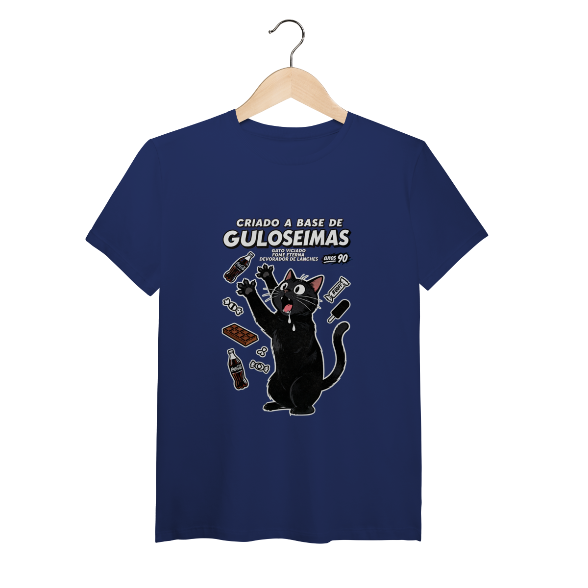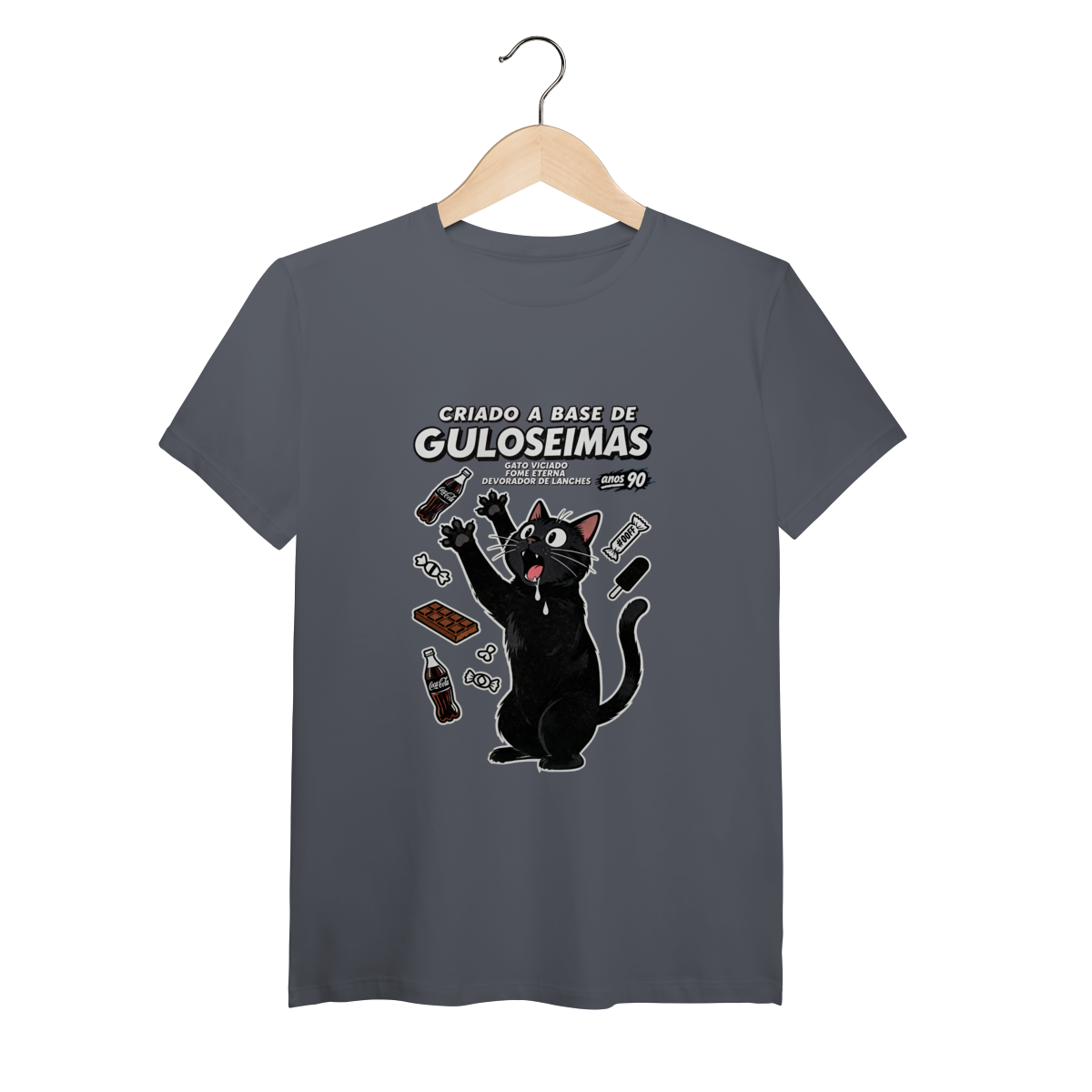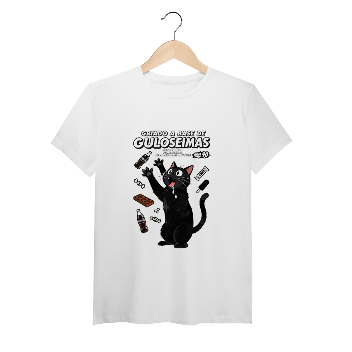 Criado a base de guloseimas e fome eterna insaciável. Camiseta exclusiva Dicavalli com nosso gato obsessivo em desespero cômico por snacks. Expressão de quem vê um salgadinho e perde totalmente o controle. Design horror-comédia retrô com estética de propaganda vintage anos 80/90 e vibe de vício alimentar hilário. Arte original que captura a relação tóxica mas deliciosa com guloseimas da infância. Ideal para nerds, geeks e devoradores compulsivos de lanches. Qualidade premium para quem foi criado literalmente a base de Fandangos, Bis e Guaraná. Fome eterna, humor eterno.