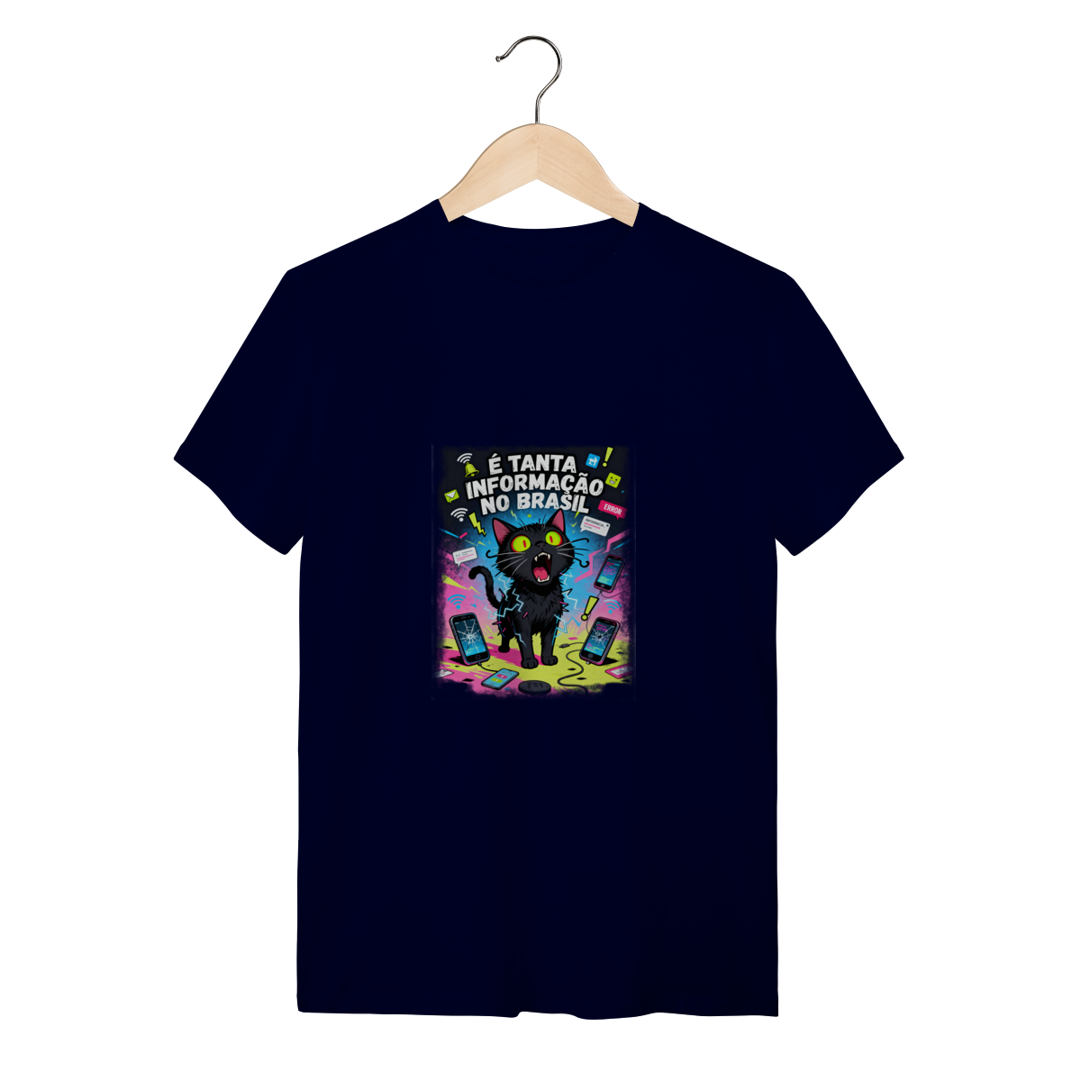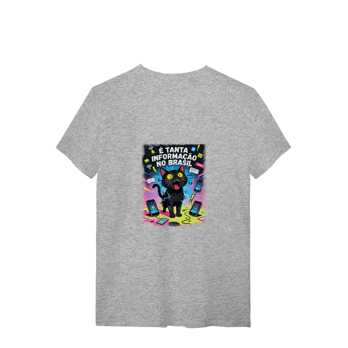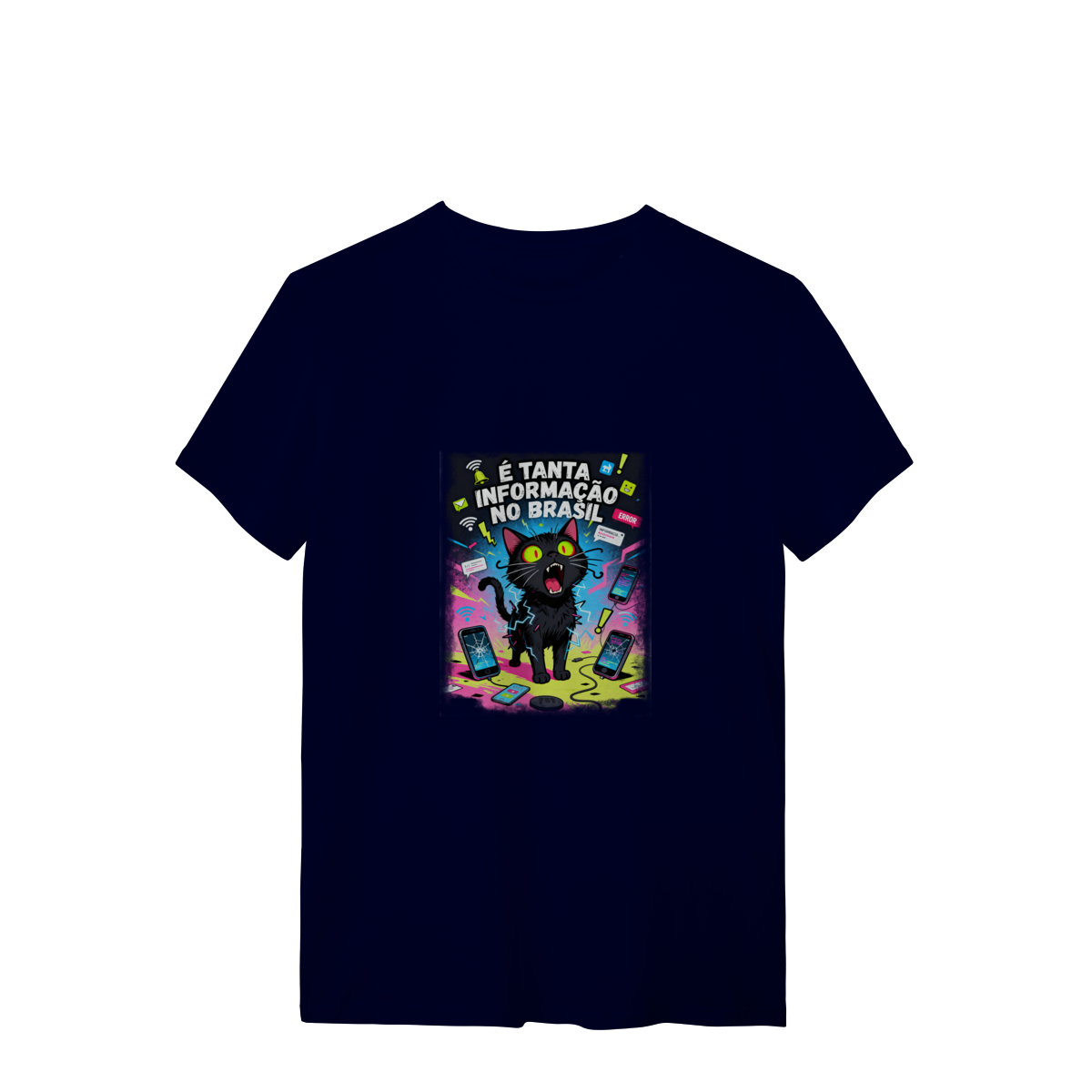 Cores do produto: Como cada tela de computador ou celular tem seu próprio jeito de mostrar cores, então a cor da sua camiseta e da estampa pode ser um pouco diferente do que você viu online.