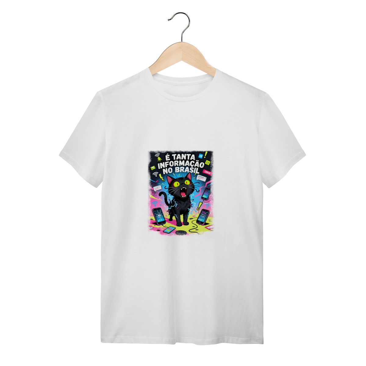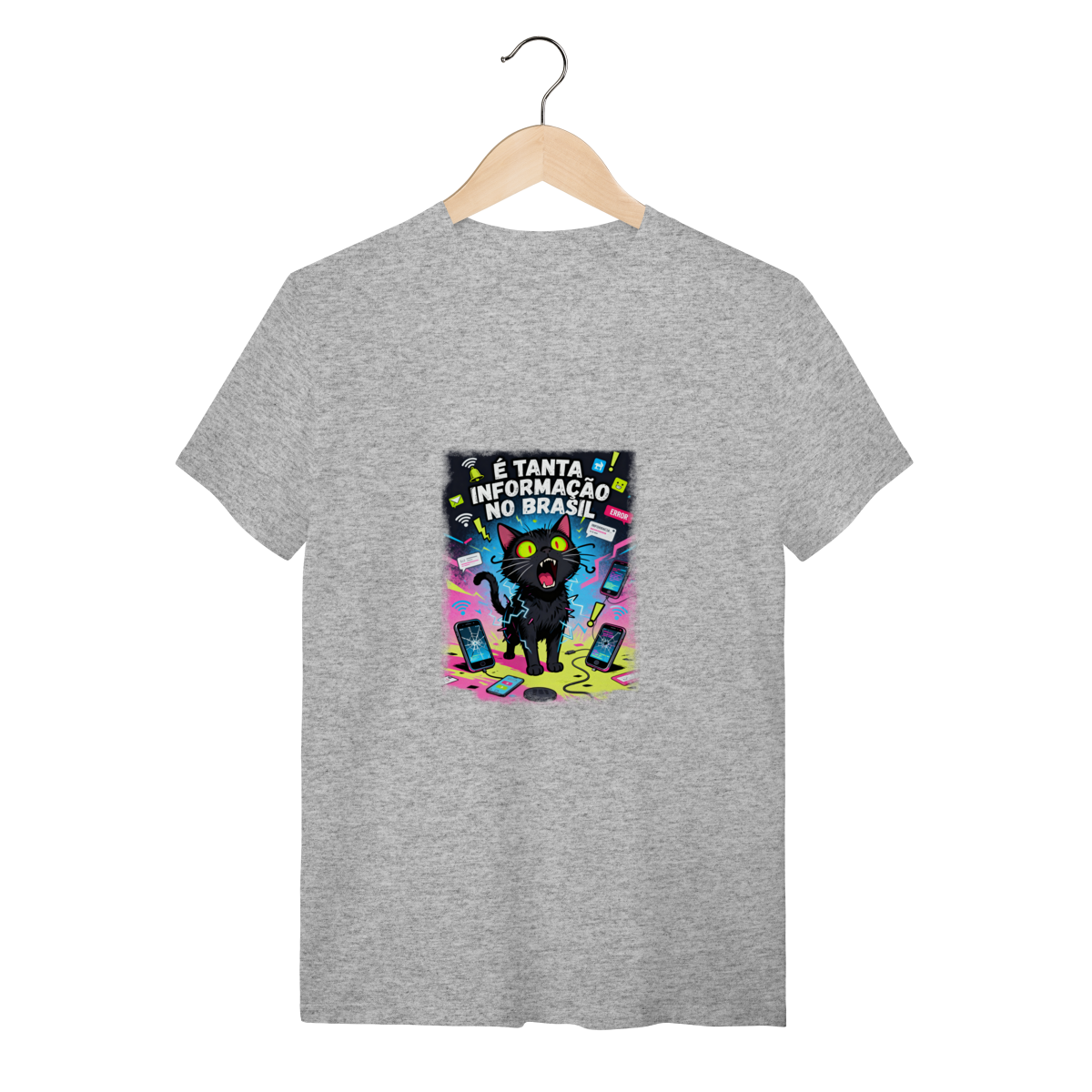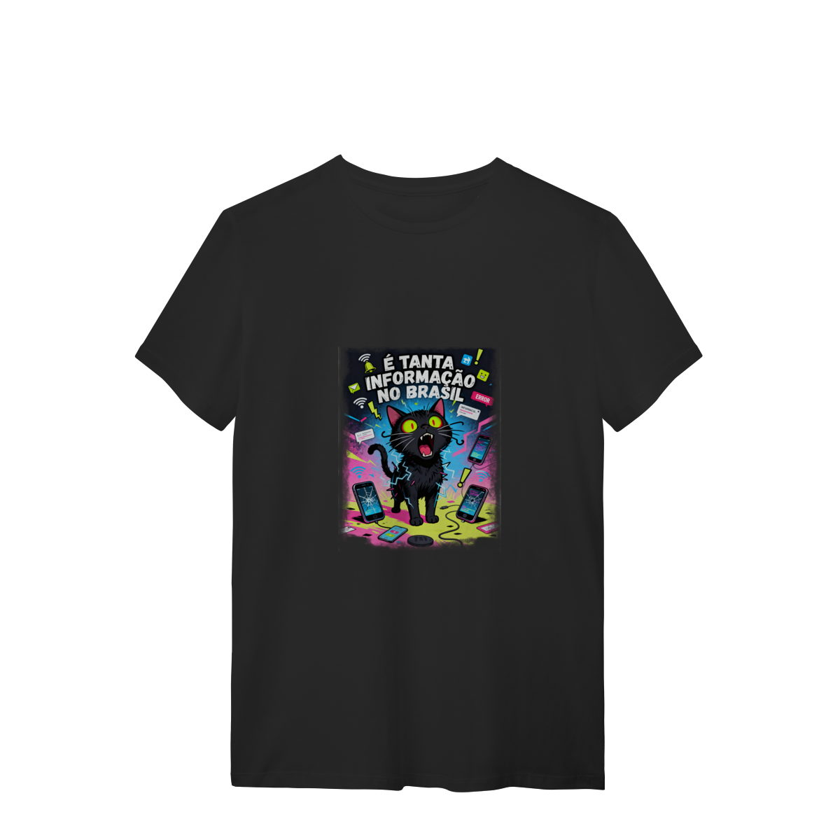 Cores do produto: Como cada tela de computador ou celular tem seu próprio jeito de mostrar cores, então a cor da sua camiseta e da estampa pode ser um pouco diferente do que você viu online.