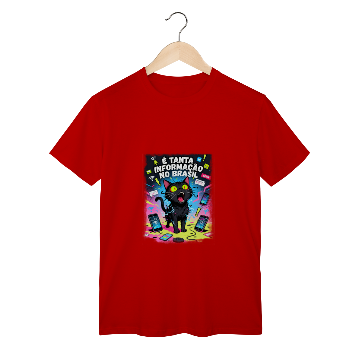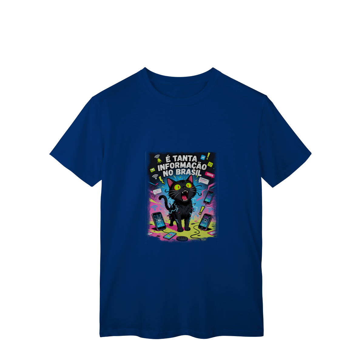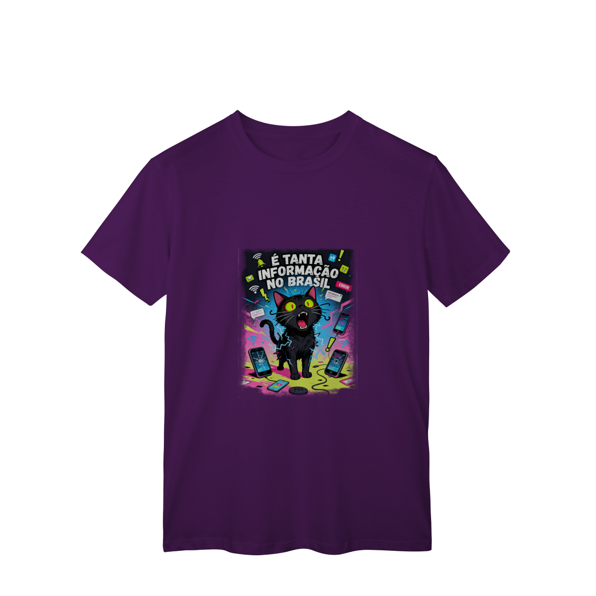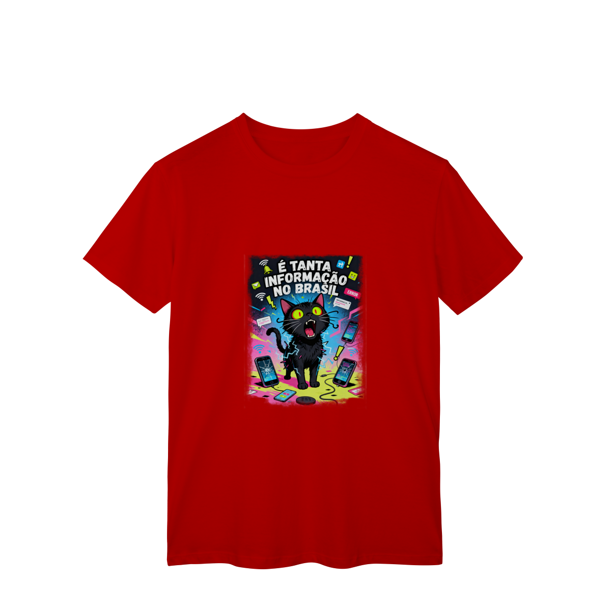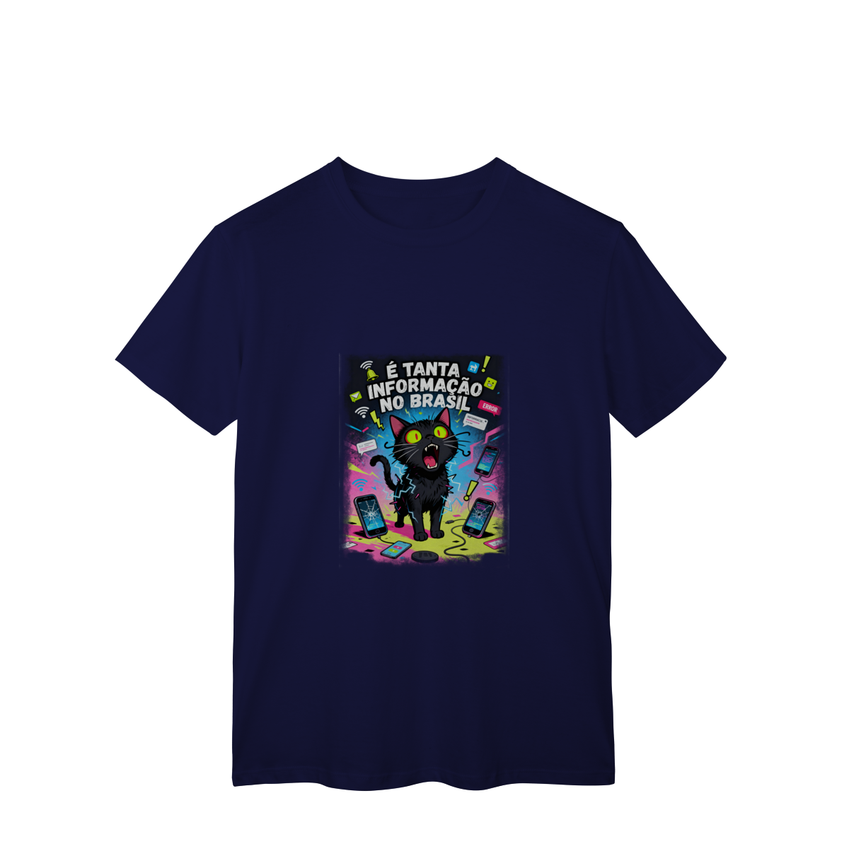 Cores do produto: Como cada tela de computador ou celular tem seu próprio jeito de mostrar cores, então a cor da sua camiseta e da estampa pode ser um pouco diferente do que você viu online.