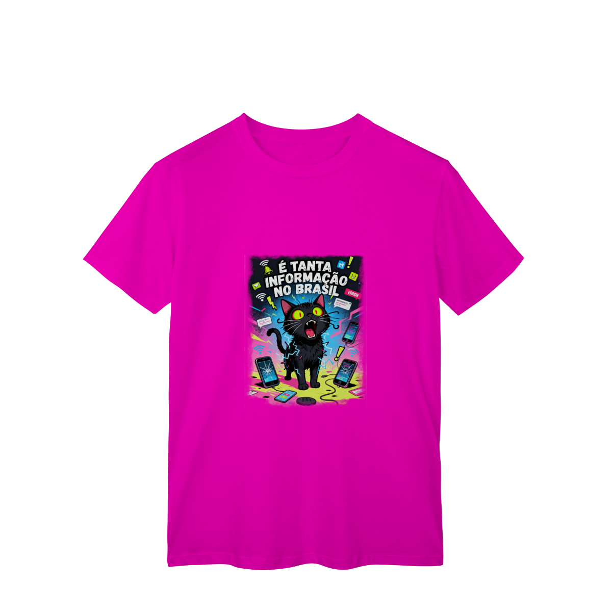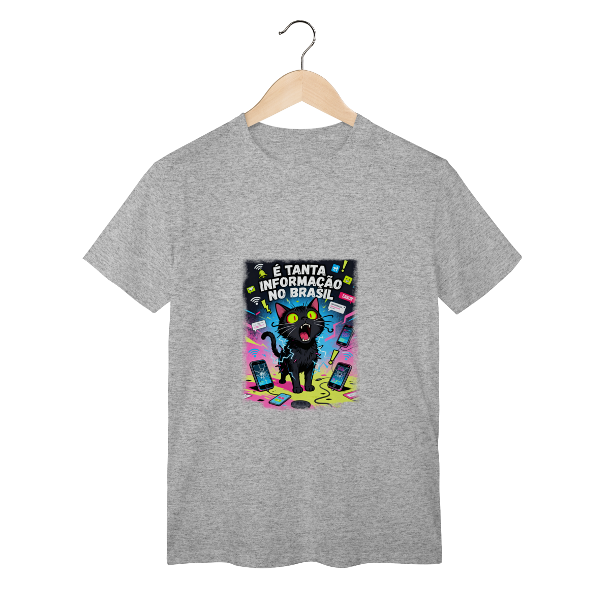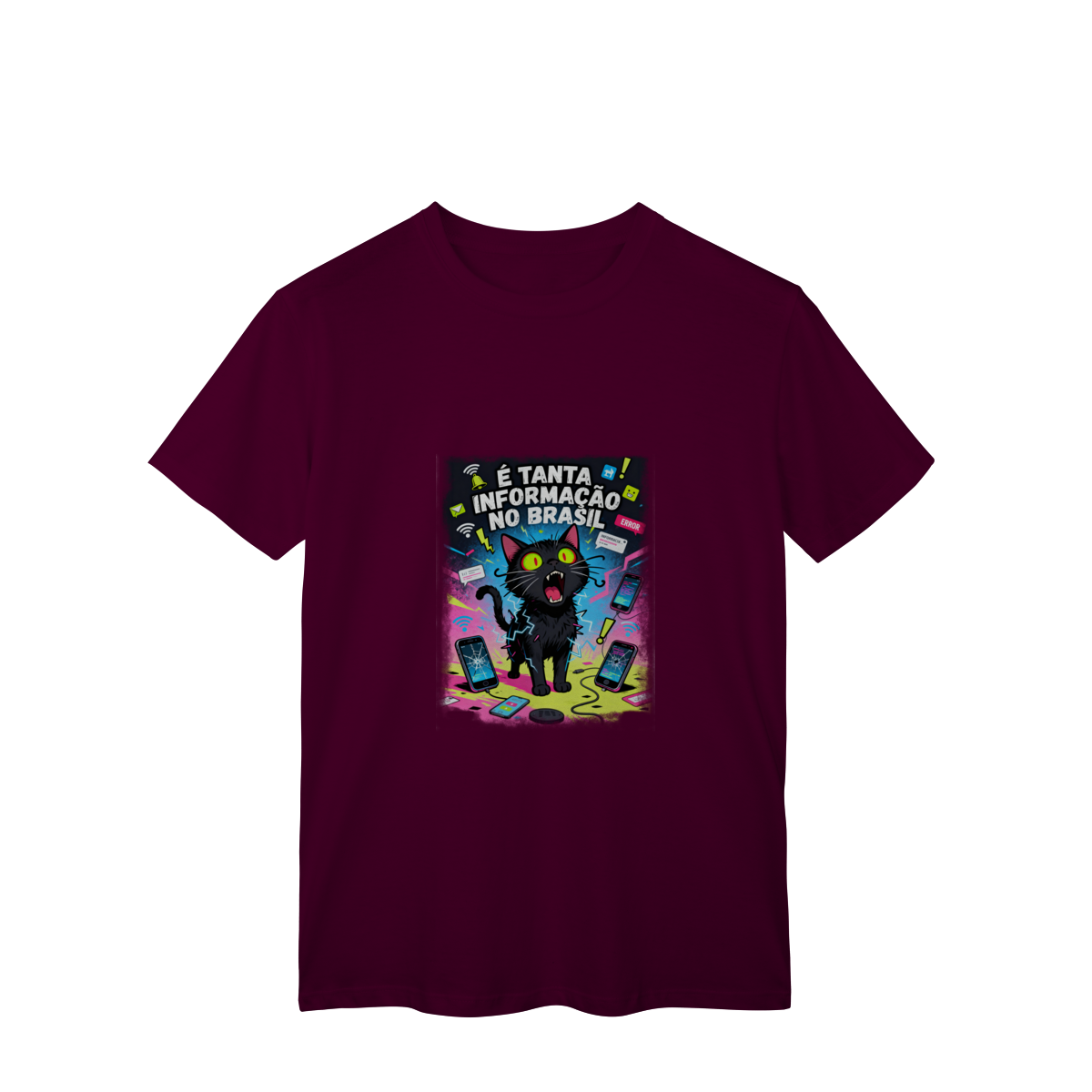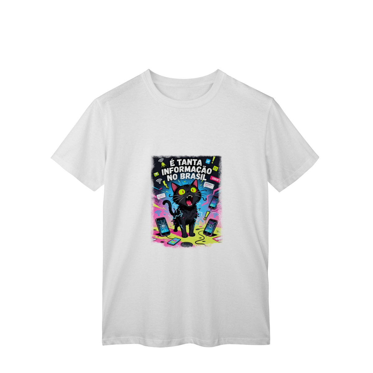 Cores do produto: Como cada tela de computador ou celular tem seu próprio jeito de mostrar cores, então a cor da sua camiseta e da estampa pode ser um pouco diferente do que você viu online.