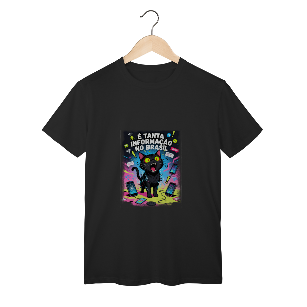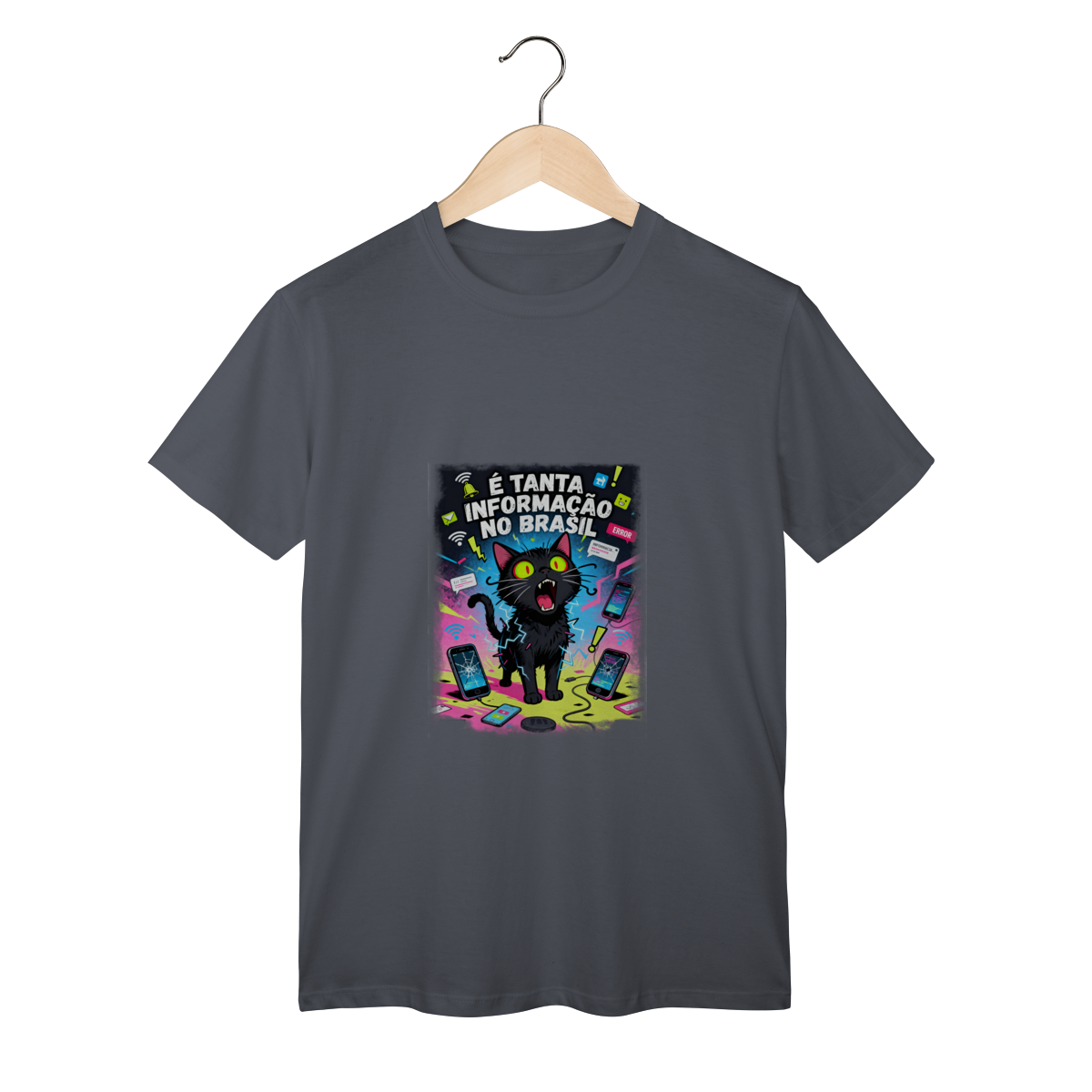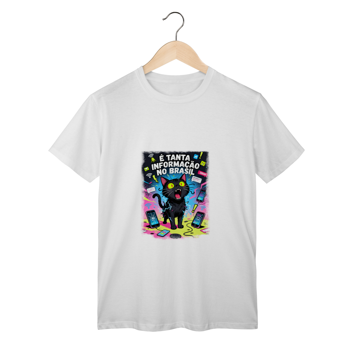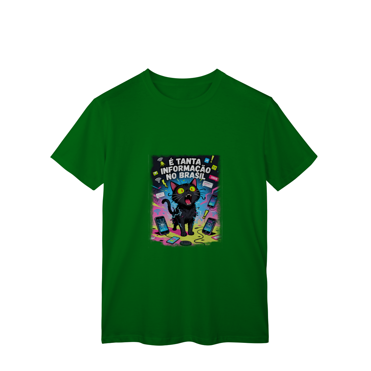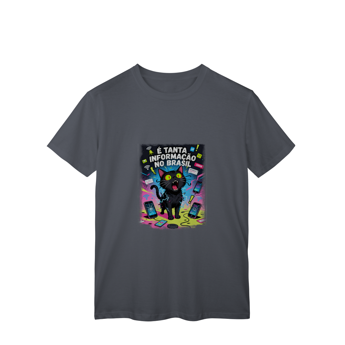 Cores do produto: Como cada tela de computador ou celular tem seu próprio jeito de mostrar cores, então a cor da sua camiseta e da estampa pode ser um pouco diferente do que você viu online.