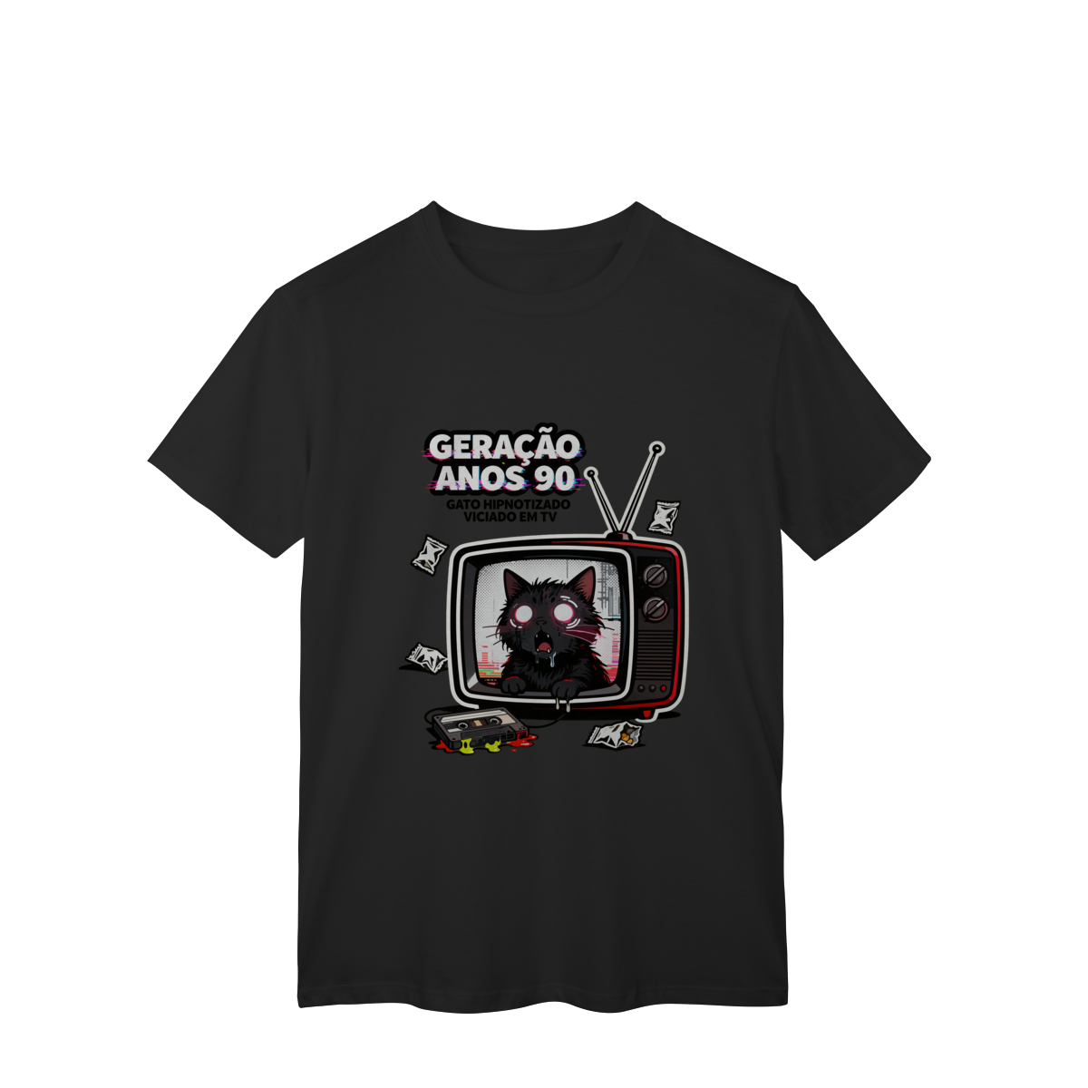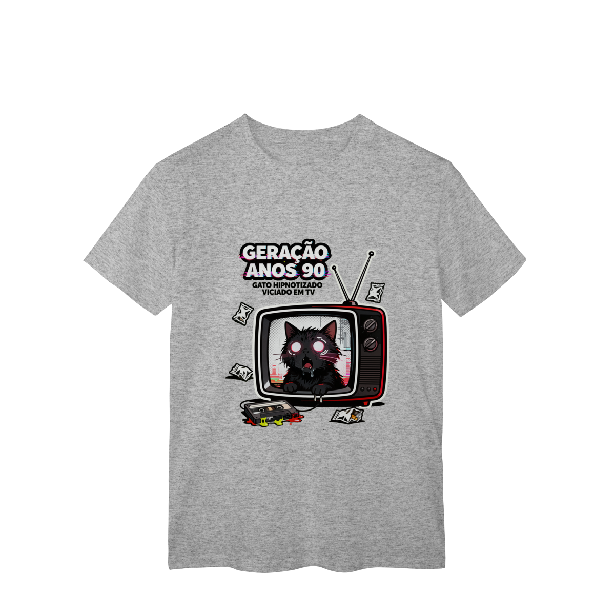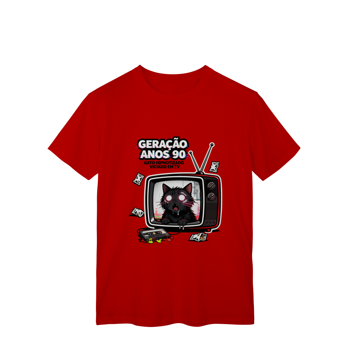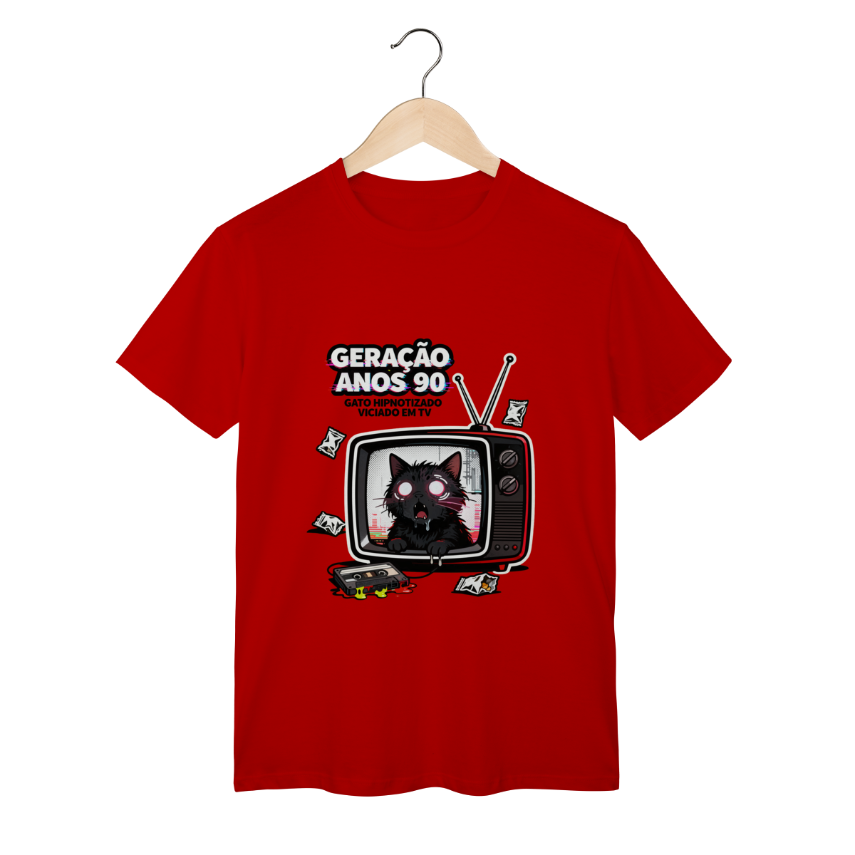 Geração Anos 90 viciada em TV e nostalgia hipnotizante. Camiseta exclusiva Dicavalli com nosso gato zumbi absorvido pela telinha há 48 horas direto. Expressão hipnotizada hilária que captura a essência de quem cresceu grudado na TV com Salgadinhos Elma Chips e Guaraná. Design horror-comédia retrô com estética VHS, cores vibrantes noventistas e vibe Memphis dark. Arte original para quem viveu a era de ouro da televisão brasileira. Ideal para nerds, geeks e millennials nostálgicos do controle remoto gigante. Qualidade premium para a geração TV Globinho e Pokémon dublado.
