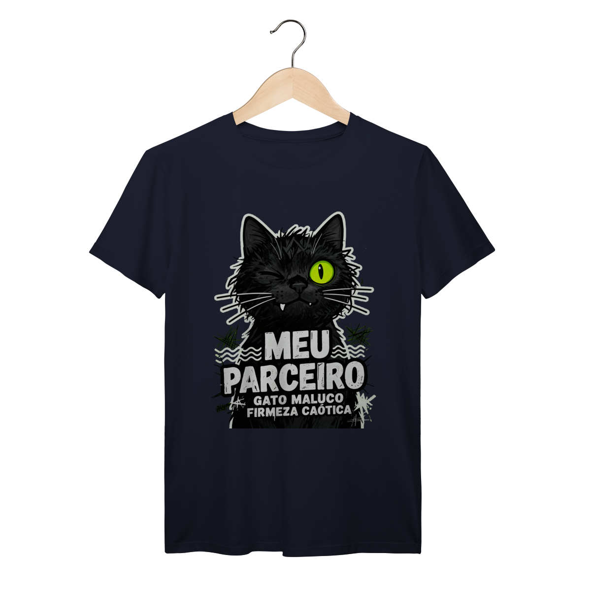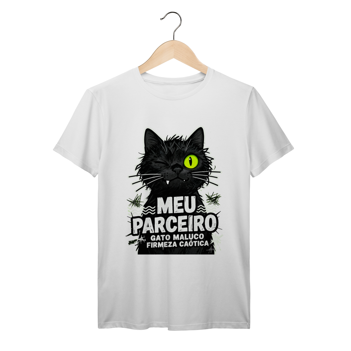 Meu parceiro na firmeza caótica das ruas. Camiseta exclusiva Dicavalli com nosso gato maluco cool mas completamente insano. Expressão descolada desequilibrada perfeita para quem é parceiro mas imprevisível. Design streetwear contemporâneo brasileiro com tipografia urbana distressed e elementos culturais tropicais dark. Arte original que captura a essência do maluco que é confiável mas nunca totalmente são. Ideal para nerds, geeks e parceiros do caos urbano. Qualidade premium para a galera que anda junto na insanidade organizada. Cool descontrolado, parceria eterna. Firmeza sempre, sanidade nunca.