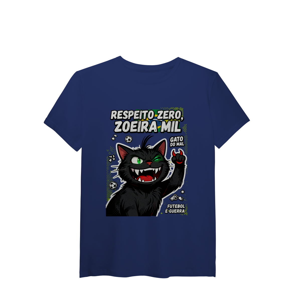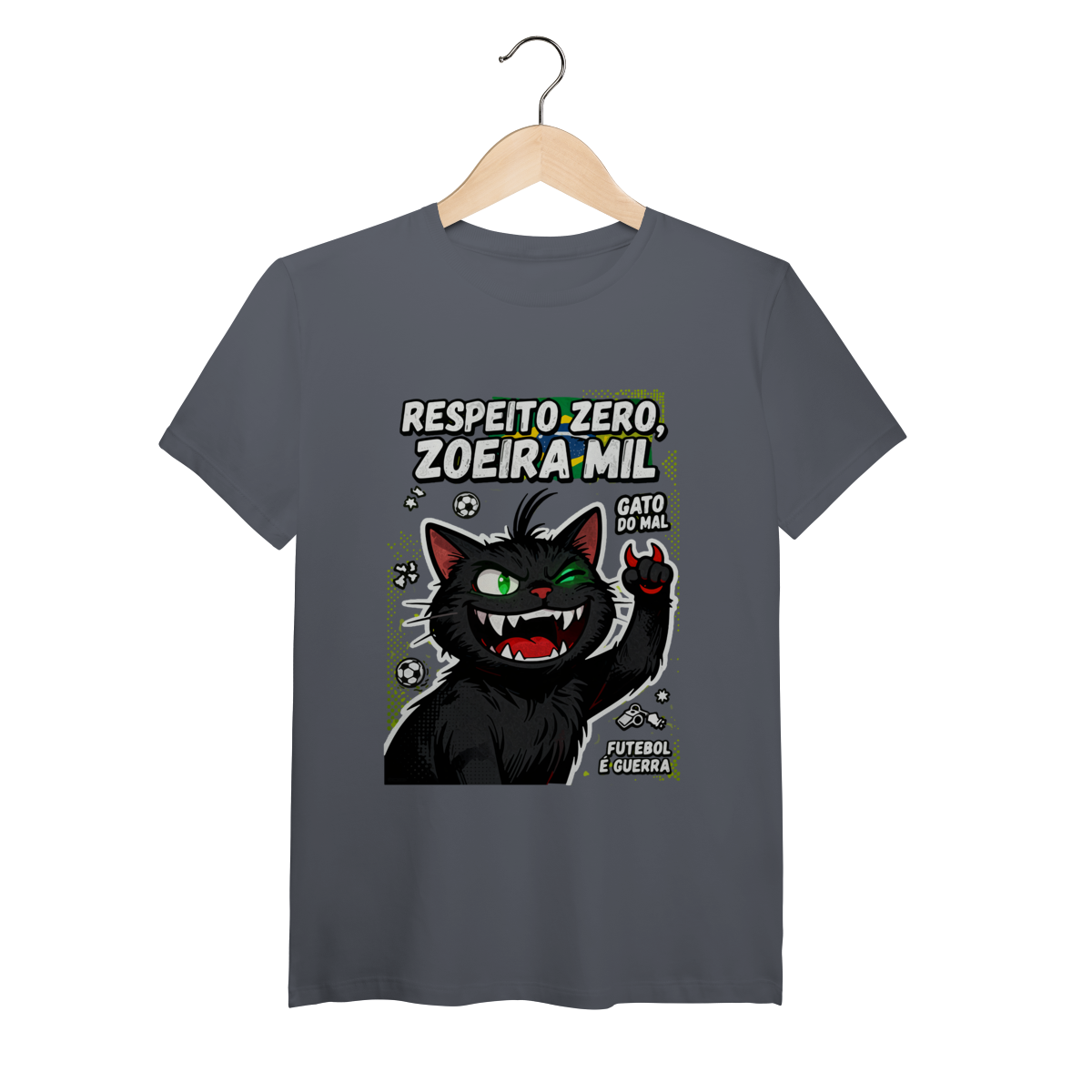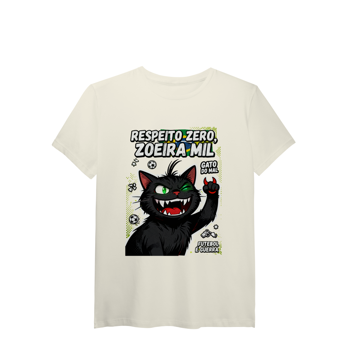 Respeito zero, zoeira mil e futebol é guerra. Camiseta exclusiva Dicavalli com nosso gato do mal em máxima energia caótica. Expressão maligna hilária perfeita para zoar rivais e curtir o caos do futebol brasileiro. Design horror-comédia com elementos dark humor e cores da bandeira usadas de forma sinistra. Arte original que captura a essência da zoeira sem limites e rivalidade engraçada. Ideal para torcedores que levam a zoeira a sério e o respeito a zero. Qualidade premium para nerds, geeks e agentes do caos futebolístico. Vista a maldade com humor brasileiro puro.