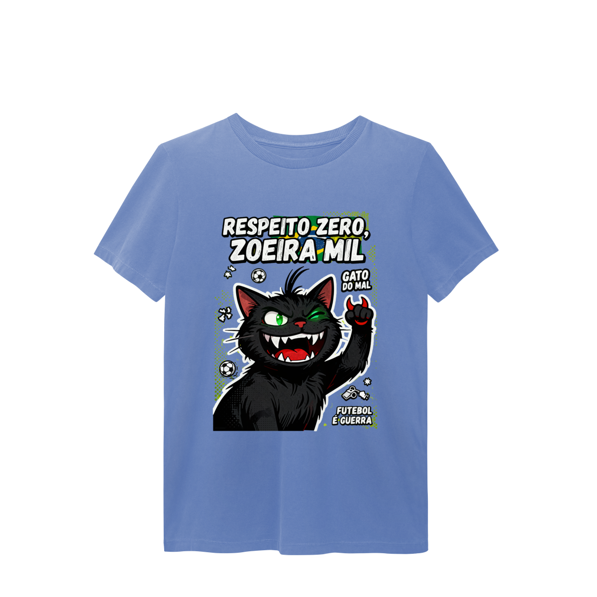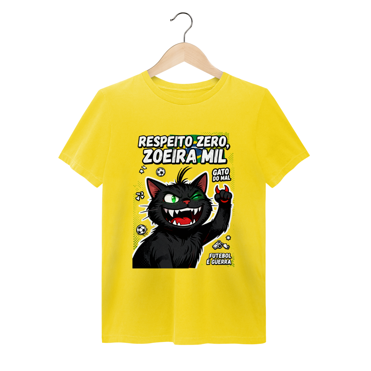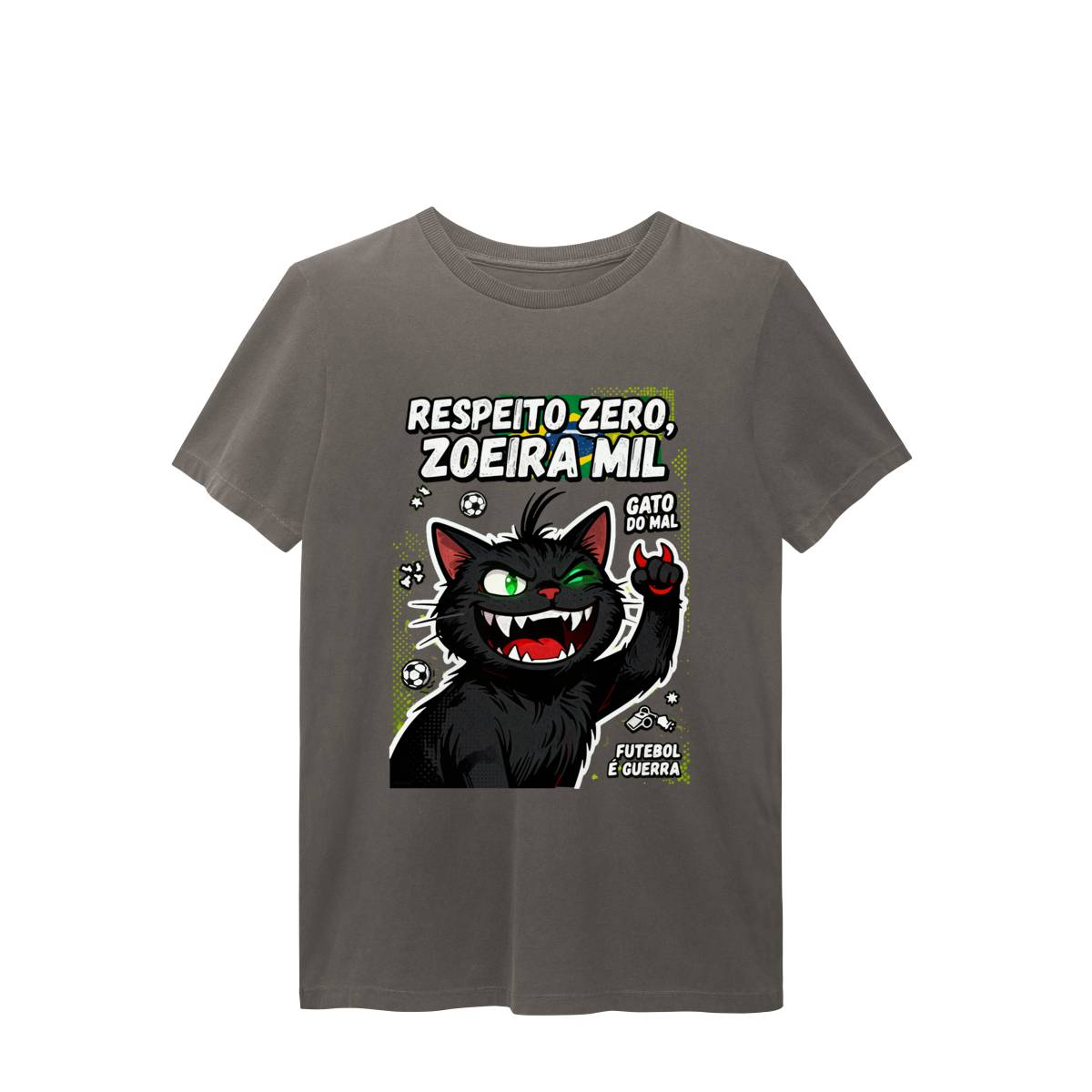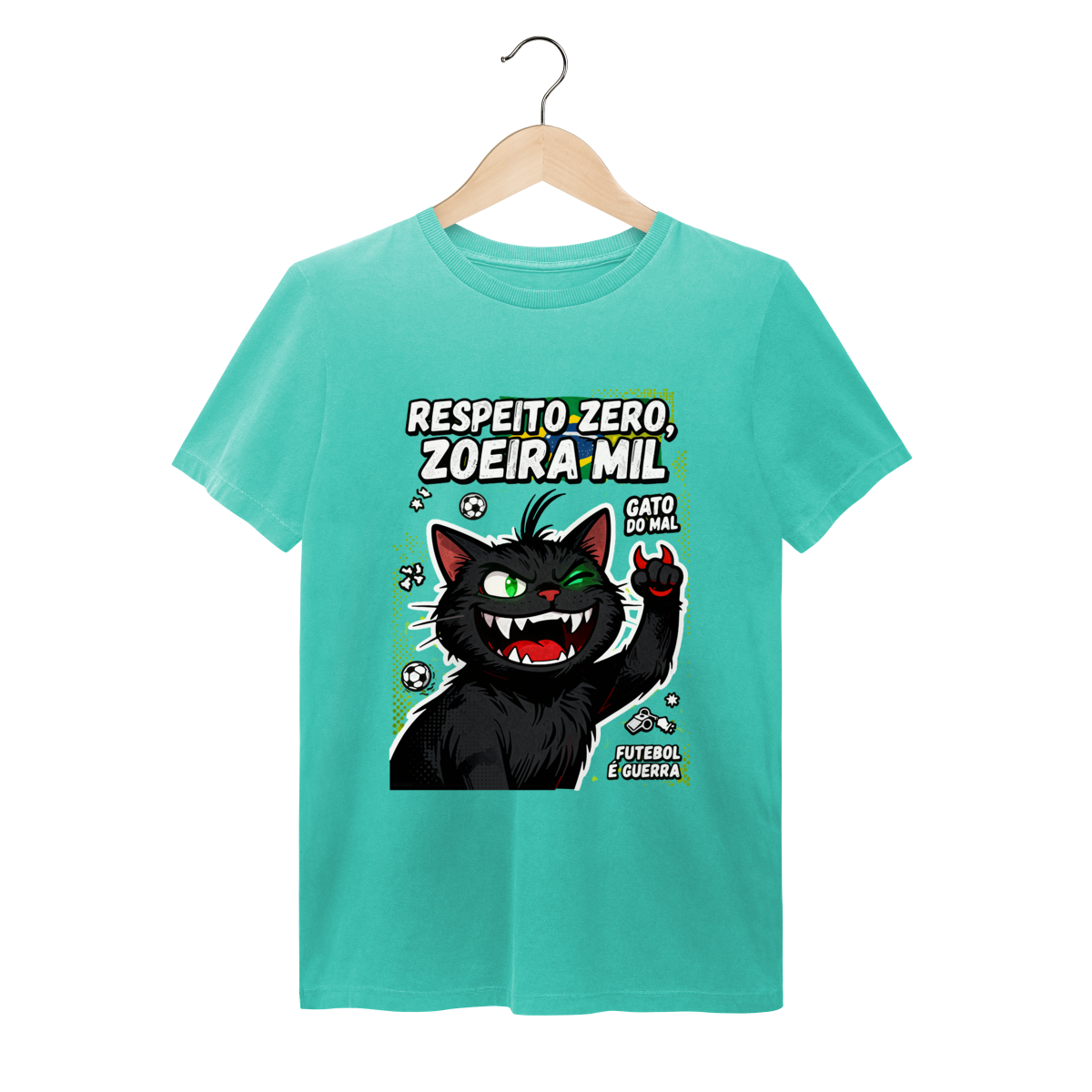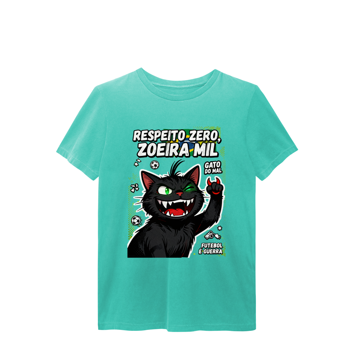 Respeito zero, zoeira mil e futebol é guerra. Camiseta exclusiva Dicavalli com nosso gato do mal em máxima energia caótica. Expressão maligna hilária perfeita para zoar rivais e curtir o caos do futebol brasileiro. Design horror-comédia com elementos dark humor e cores da bandeira usadas de forma sinistra. Arte original que captura a essência da zoeira sem limites e rivalidade engraçada. Ideal para torcedores que levam a zoeira a sério e o respeito a zero. Qualidade premium para nerds, geeks e agentes do caos futebolístico. Vista a maldade com humor brasileiro puro.
