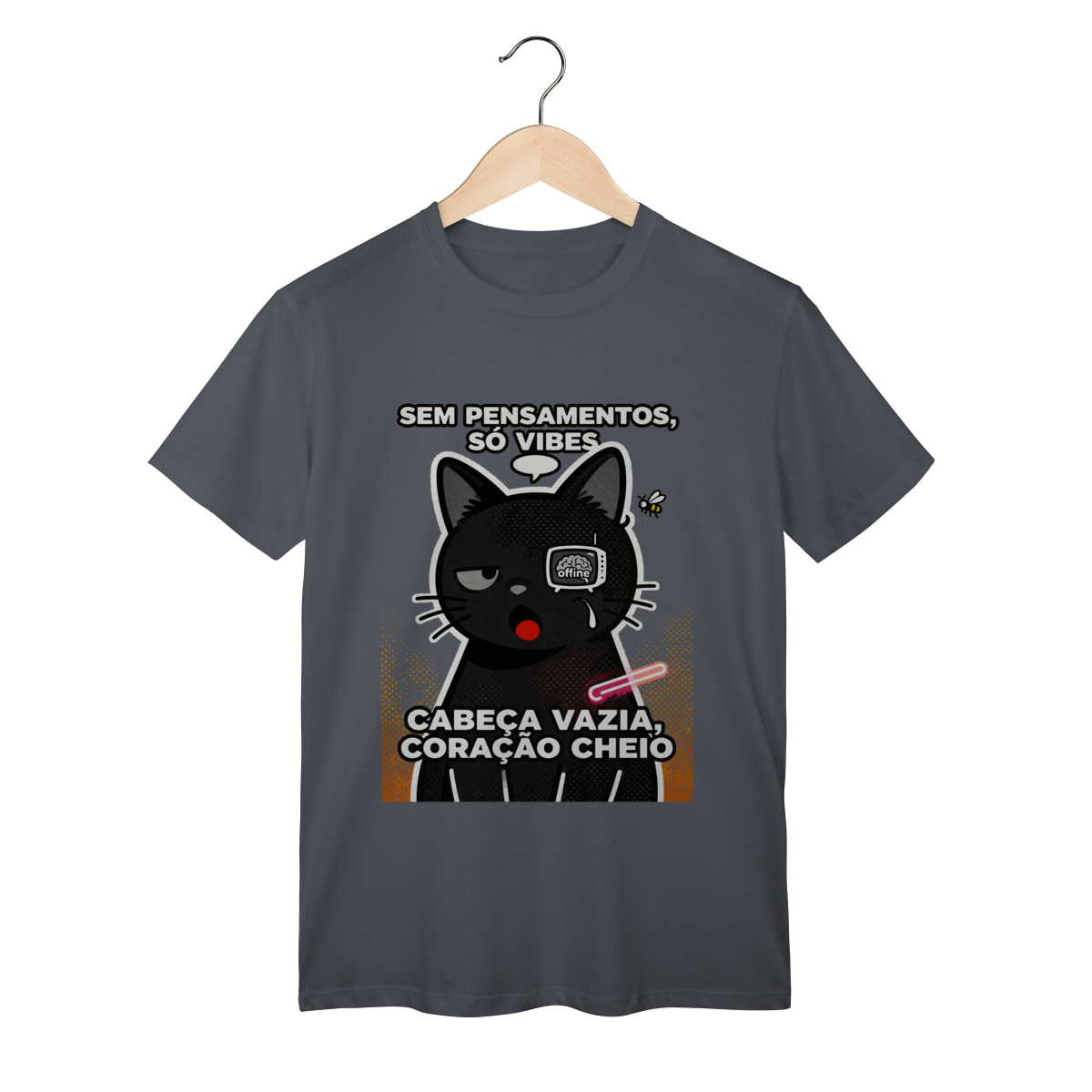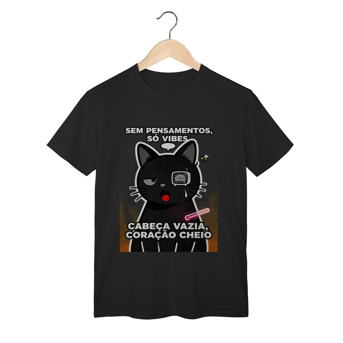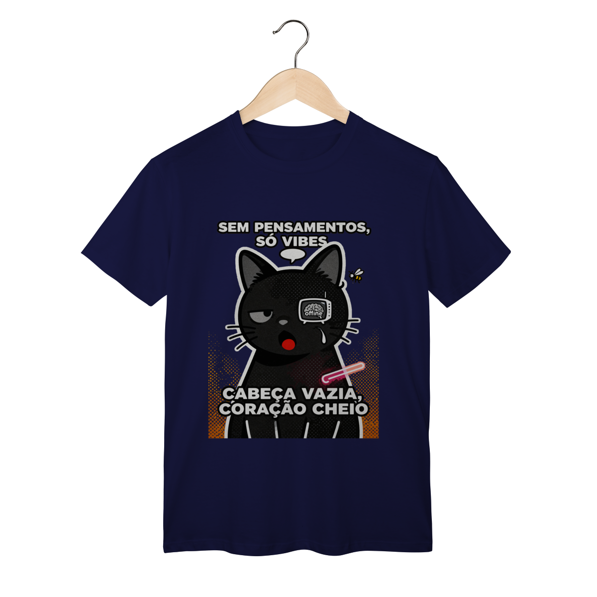 Sem pensamentos, só vibes e zero neurônios ativos. Camiseta exclusiva Dicavalli com nosso gato em vazio cerebral absoluto. Olhos completamente vazios encarando o nada, pupilas minúsculas, boca aberta em expressão burra vazia. Cabeça vazia, coração cheio, brainrot brasileiro ativo. Design humor absurdista Gen Z que captura a essência de viver sem pensar nada, só existindo. Arte original com balão de fala vazio, estática de TV nos olhos mostrando cérebro offline. Ideal para nerds, geeks e zoomers vivendo no vazio mental relatable. Qualidade premium para quem vive o esvaziamento cerebral com orgulho. Pensamentos zero, vibes mil.