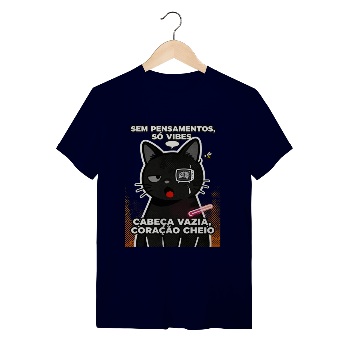 Sem pensamentos, só vibes e zero neurônios ativos. Camiseta exclusiva Dicavalli com nosso gato em vazio cerebral absoluto. Olhos completamente vazios encarando o nada, pupilas minúsculas, boca aberta em expressão burra vazia. Cabeça vazia, coração cheio, brainrot brasileiro ativo. Design humor absurdista Gen Z que captura a essência de viver sem pensar nada, só existindo. Arte original com balão de fala vazio, estática de TV nos olhos mostrando cérebro offline. Ideal para nerds, geeks e zoomers vivendo no vazio mental relatable. Qualidade premium para quem vive o esvaziamento cerebral com orgulho. Pensamentos zero, vibes mil.